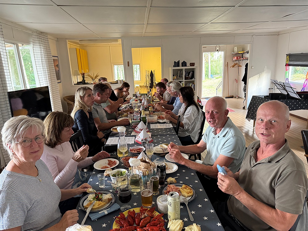 Spontan kräftskiva i klubbstugan med god mat, quizar, underhållning och lite dans. Mycket trevligt!